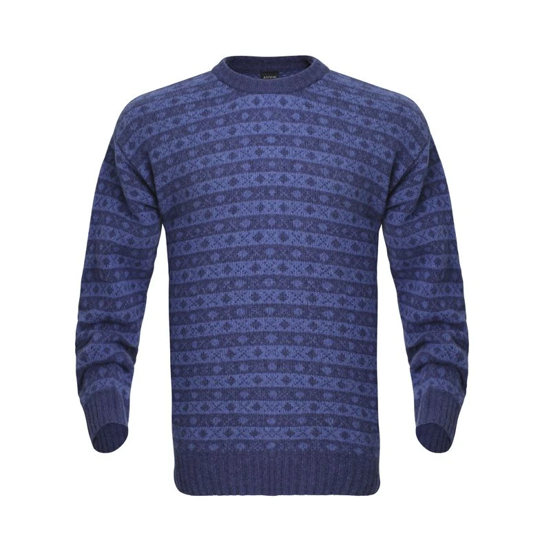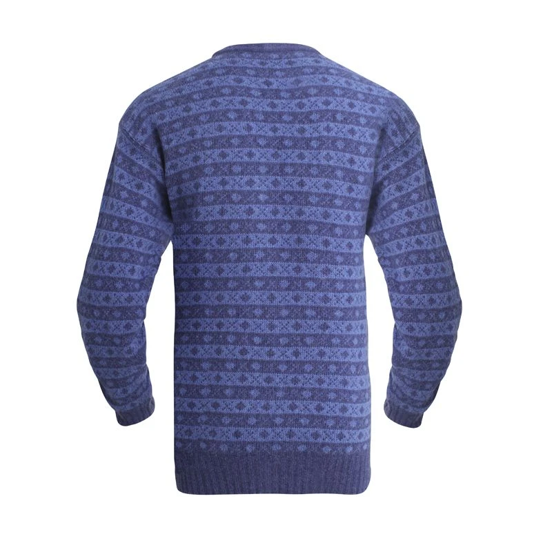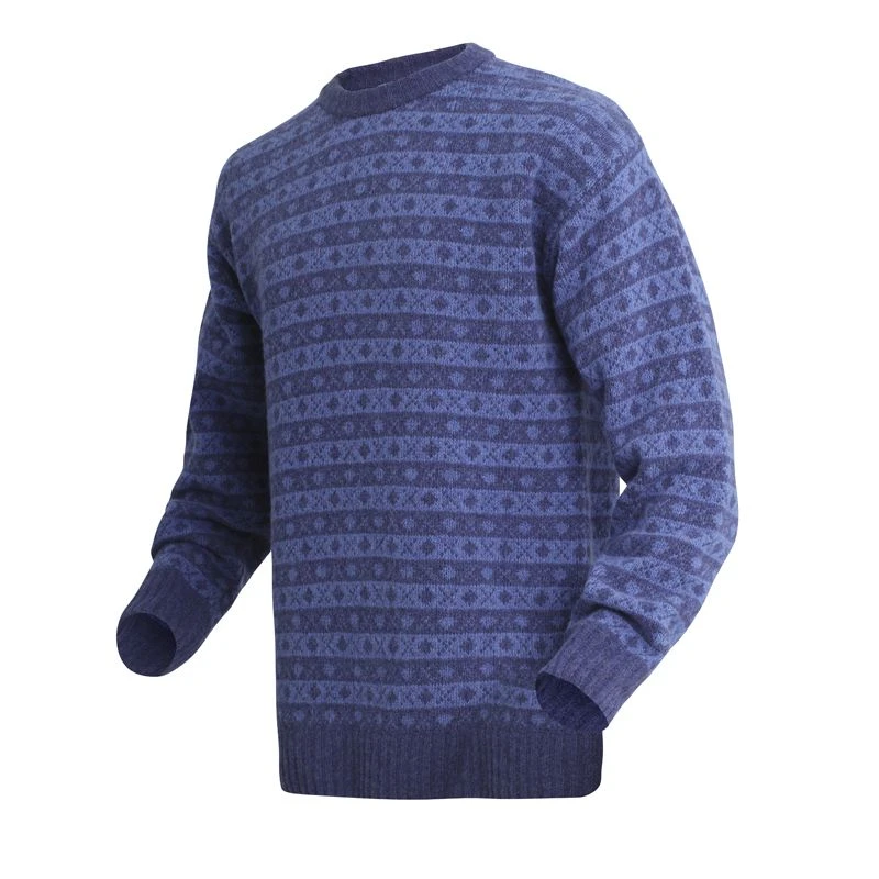Hjelm er en tidløs model i blå nuancer, som vil klæde dig i flere år. Mørkeblå kanter skjuler den første snavs og rammer det fine mønster ind. Farverne passer til det meste – og du kan sagtens bruge trøjen til både brændekløvning i Asivik Trekking Pants og med jeans på hjemmekontoret.