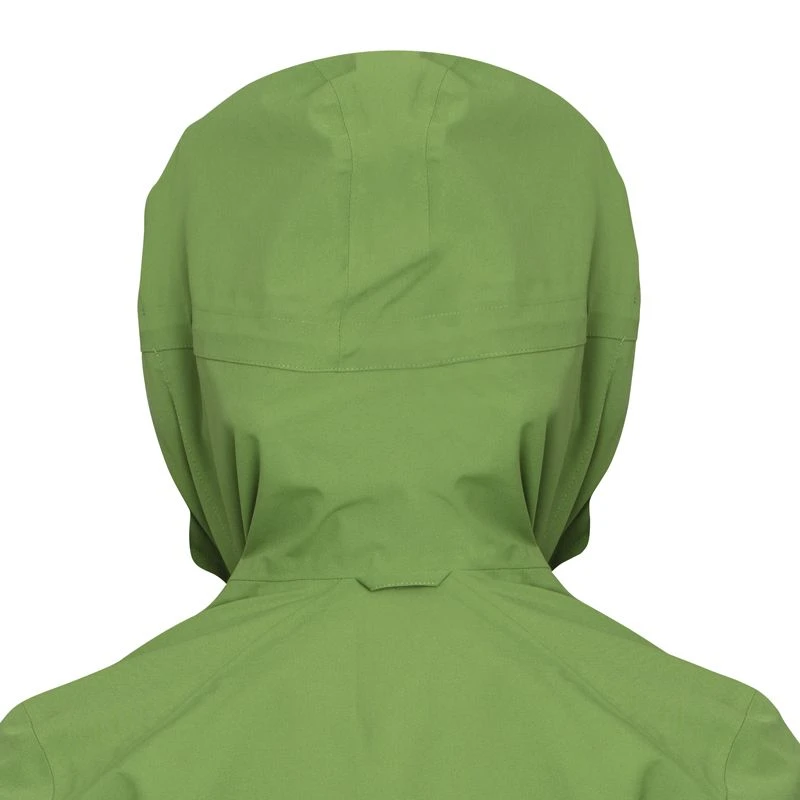 Jakken er helt vandtæt, åndbar og designet til børn. Den har en let børstet overflade, der gør den mere blød, komfortabel og mere ”stofagtig”. Den kan bruges til mudder i skoven eller – efter en vask – være præsentabel, når der er behov for det.