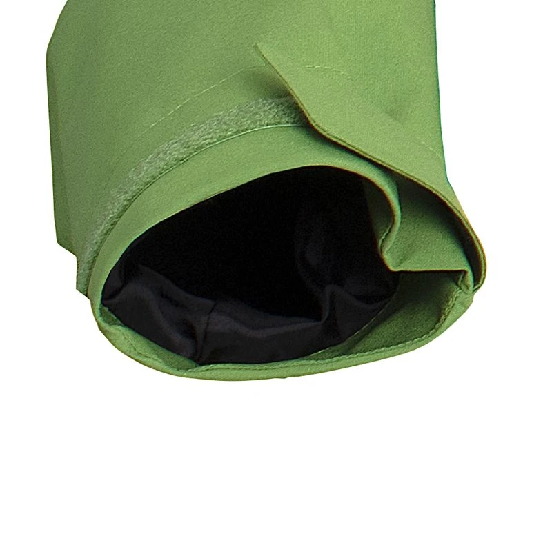 Ærmerne kan strammes til med velcro, så vand og vind holdes ude.