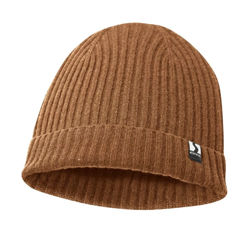 Huen er strikket i lun og blød lammeuld. Garnet er fra en førende italiensk garnleverandør og huen er strikket i Europa.