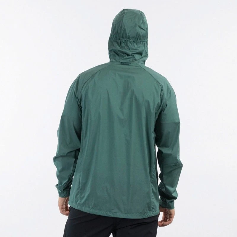 Jakken er 100 % vindtæt, kraftigt vandafvisende / hurtigtørrende og i 4-vejs strechmateriale, der giver en fremragende bevægelsesfrihed. Når den ikke er i brug pakkes, den hurtigt sammen i den ene frontlomme til en kompakt enhed, der er nemt at pakke ned i rygsækken, så den er lige ved hånden til brug i pausen eller hvis vejret pludseligt slår om.