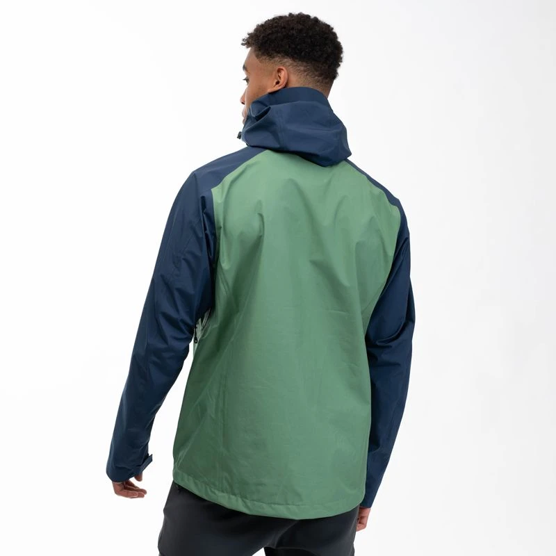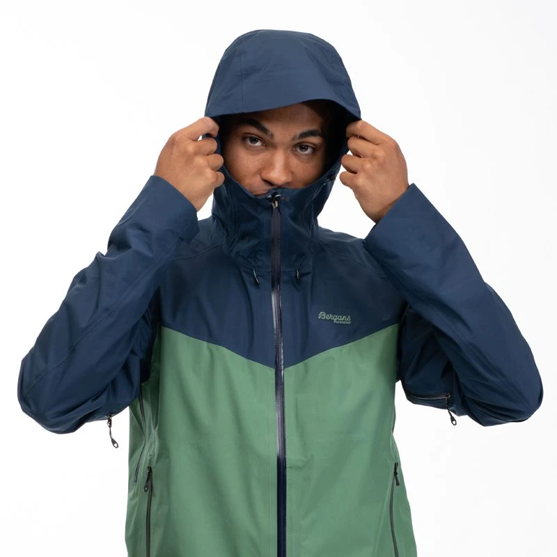 Fast hætte med justering af elastiksnore i front og bag, så du får det bedste fit samt stiv kant på skyggen så den holder vandet væk fra panden og øjne. Velcrojustering i ærmeafslutningen så du kan holde på varmen. Flap bag frontlynlås, så den er 100% vandtæt. Formsyet albueafsnit for bedre bevægelsesfrihed. Ingen skulder- og sidesømme for mindre friktion og gnidning samt forlænget rygparti – perfekt til dig med den tunge rygsæk. Elastisk snøre langs hoften optimeret til brug med én hånd.