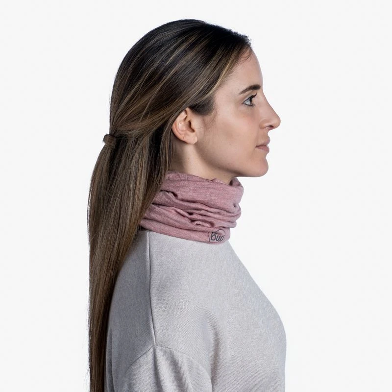 Den stilrene Buff i merinould ikke bare et stykke multifunktionel beklædning til hoved og hals, men også et godt alternativ til et halstørklæde til brug både ude og inde.