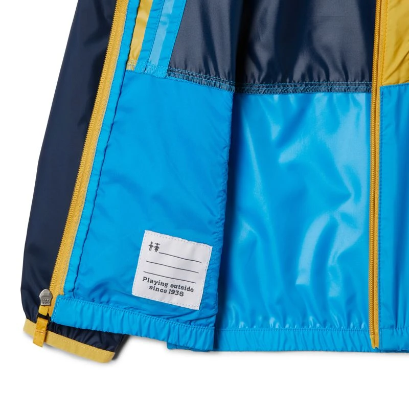 Jakken er konstrueret i en letvægts materiale, der er vindtæt og vandafvisende, så junior kan holde sig tør og varm i ustadigt vejr. Ydermere indeholder den Columbias Omni-Shade™ teknologi som beskytter mod solen. Den har også elastikker ved hætte, hofte og manchetter, der hjælper med at holde vinden ude.