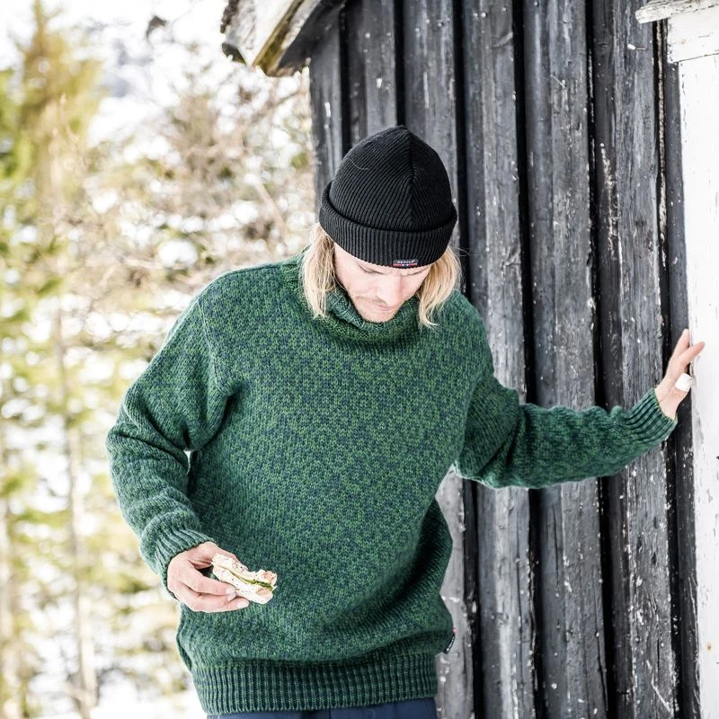 Svalbard er strikket i tyk varm uld, der giver en fantastisk varme og isolerer selv i våd tilstand. Den klassiske uldtrøje fungerer derfor både som en varm trøje yderst eller som et ekstra varmt lag under skaljakken, når kulden virkelig bider.
