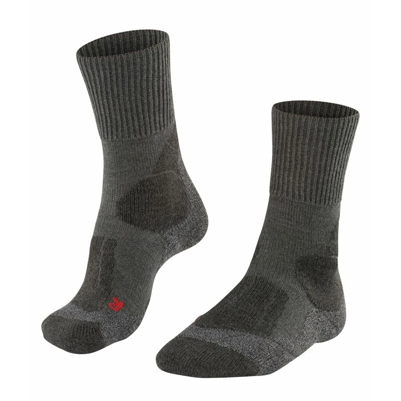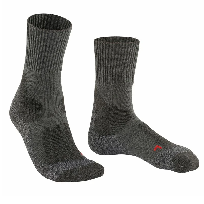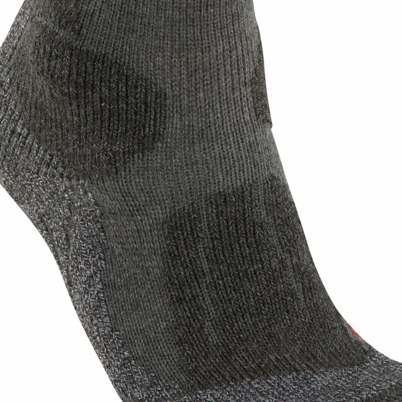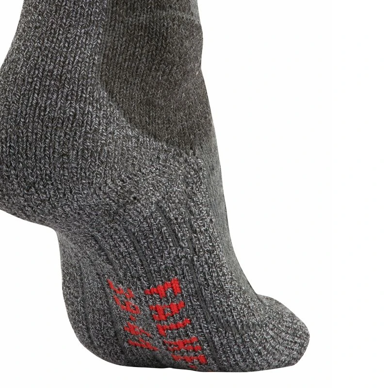 Falke TK1 Trekking vandresokker passer til vandring i svært terræn og med tung oppakning. TK1 sokken har derfor ekstra tyk frotte i hæl og tå, der sørger for ekstra stødabsorbering og modvirker friktion mellem fod og sok / støvle, så risikoen for vabler og varme fødder mindskes. Sokkerne er ideelle til fjeldvandring, hytte-til-hytte ture i Alperne og tilsvarende strabadserende vandreture, hvor dine fødder har brug for den allerbedste komfort og beskyttelse.