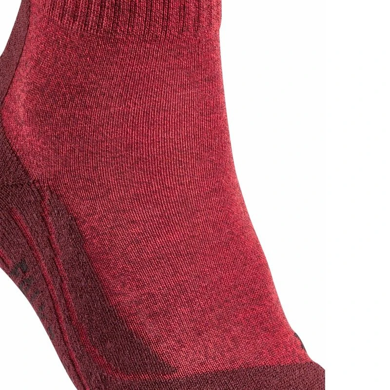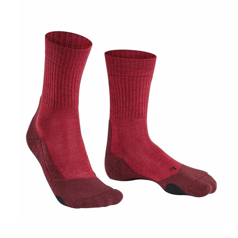 Falke TK2 Wool vandresokkerne er strikket til kvinder og sidder derfor bedre på en smallere fod. De anbefales til vandring i lettere terræn og med oppakning, der vejer 10 – 15 kg. TK2 sokken har mellemtyk frotte i hæl og tå, der sørger for ekstra stødabsorbering og modvirker friktion mellem fod og sok / støvle, så risikoen for vabler og varme fødder mindskes. Sokkerne er ideelle til Caminovandring, Hærvejen og forlængede weekend- og dagsture.